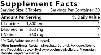 • Contains the CURRENT ideal ratio of branched chain amino acids - leucine, isoleucine and valine - in a convenient tablet form