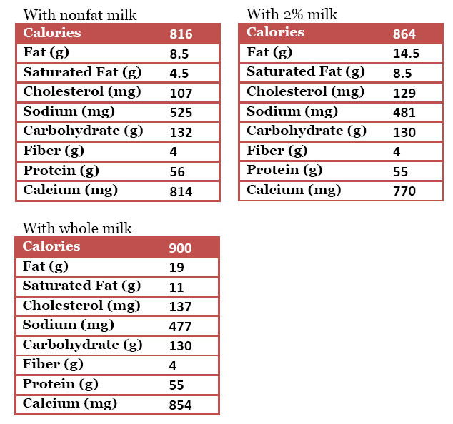 • 1  1/2 cups nonfat, 2% or whole milk (or any milk substitute of your choice)